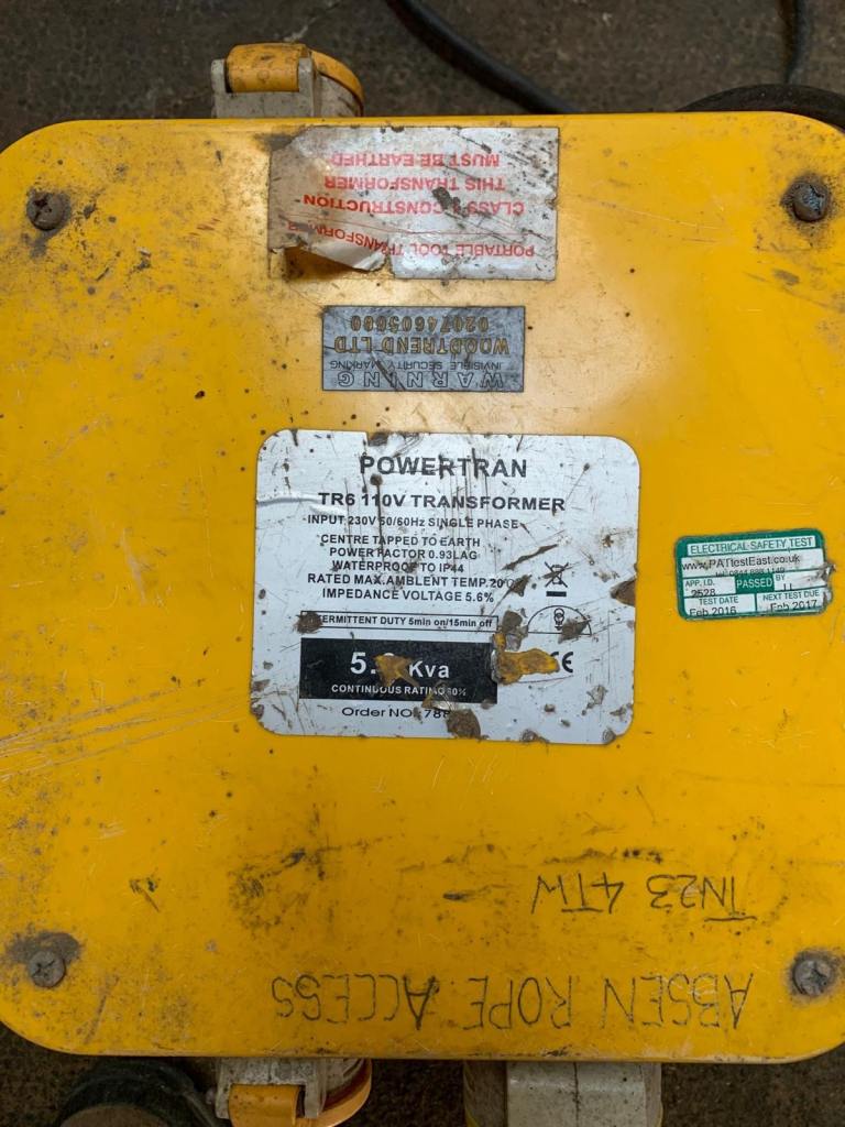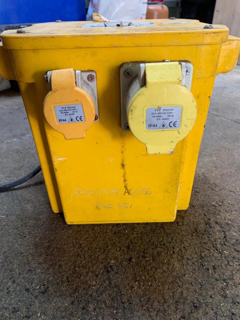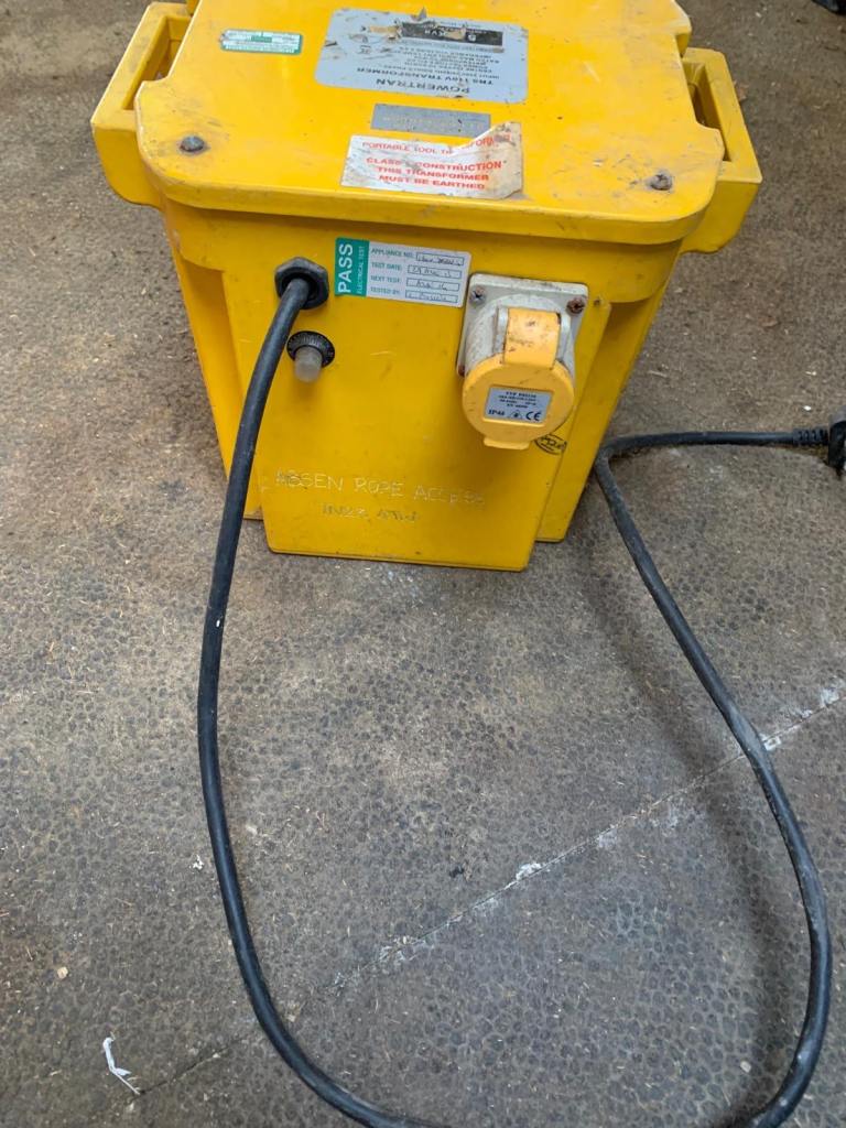 Site transformer, Defender 5KVA for safe operation of smaller power tools including angle grinders, concrete polishers, concrete grinders and dust control vacuums. Can be operated at reduced output from a standard 13A, 240v supply