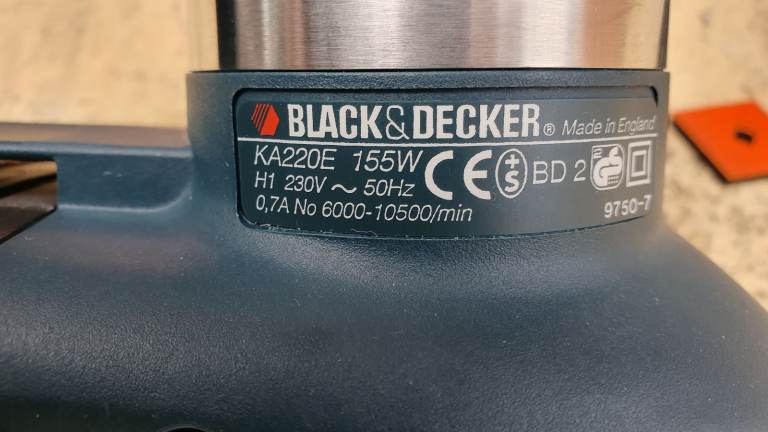 Black and Decker Orbital Sander. KA220E, corded, 155W. Barely used and so in excellent condition. Complete with instructions and spare sanding sheets.