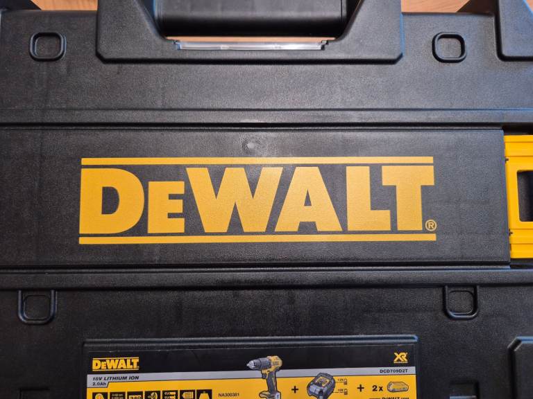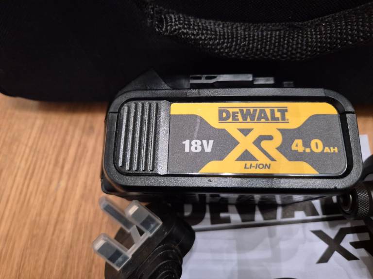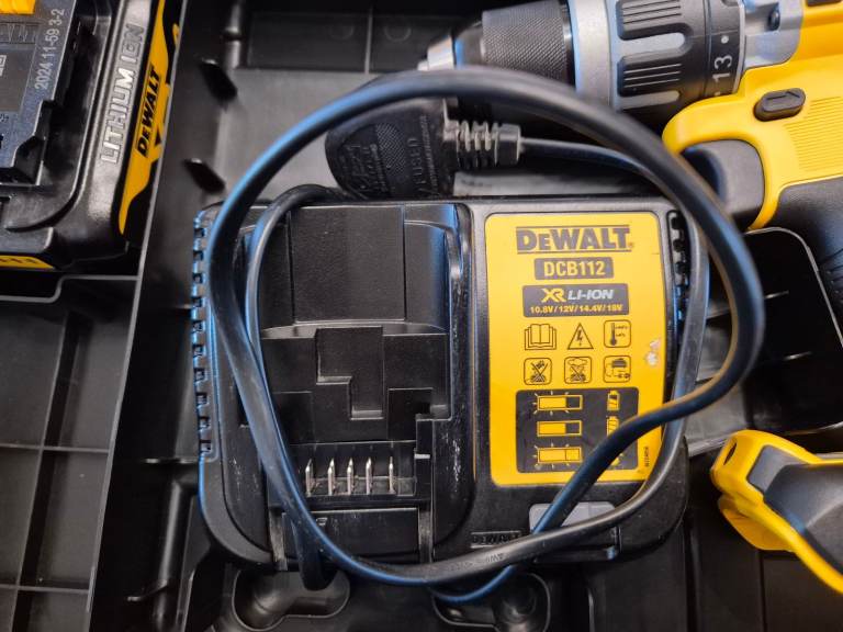 A dewalt cordless 18v combi hammer drill with a 4 amp battery and a charger.and carry case