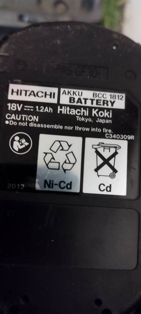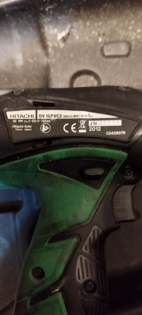 Hitachi DV 18DVC2 cordless impact driver/drill. This 18V tool was manufactured by Hitachi Koki in Tokyo, Japan