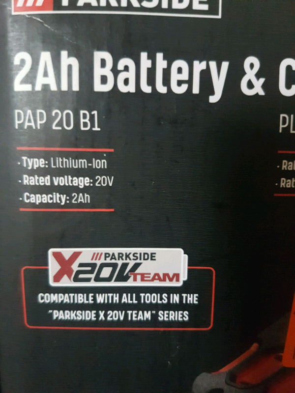 Always handy to have a spare battery. Parkside 2Ah Battery and charger, compatible with all Parkside X Team cordless tools.