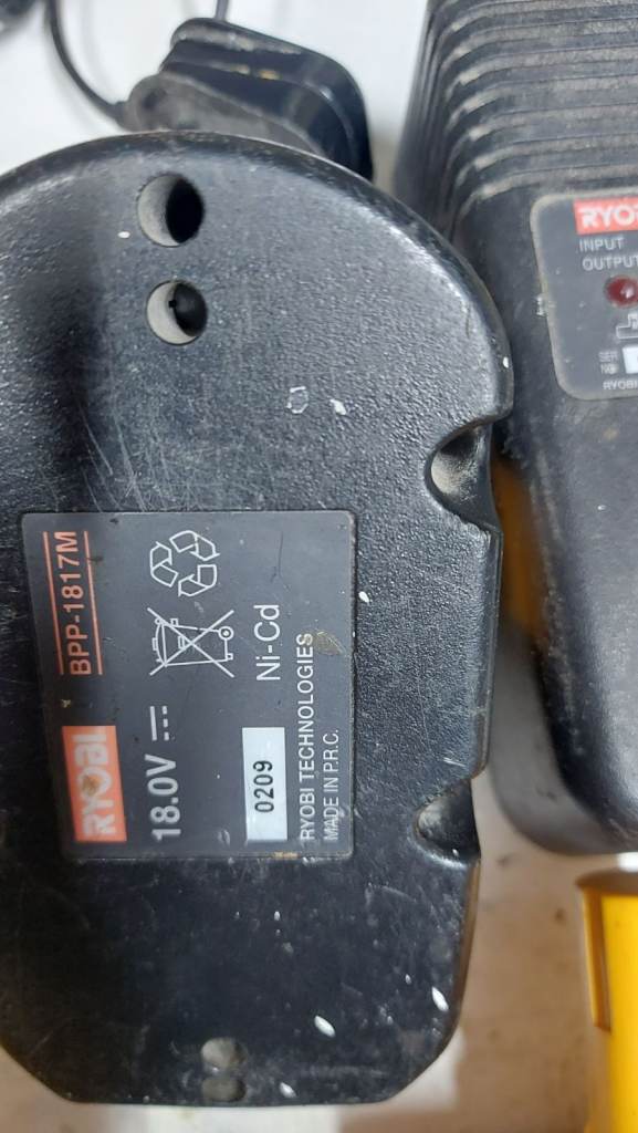 2 chargers for NiCad Ryobi Batteries and 3 NiCad Batteries. Batteries still work but are quite old and a bit tired. Buyer collection only from Wombourne.