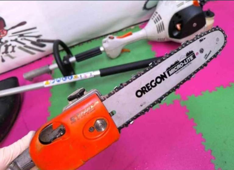 2 ATTACHMENTS - #1 - STRIMMER - NEW HEAD, #2 - SAW - NEW GUIDE BAR AND NEW CHAIN