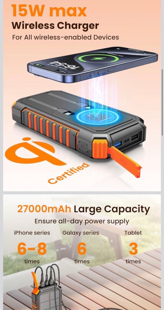 Wireless-Solar-Power-Bank-27000mAh(Brand new)