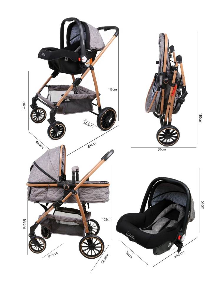 • Complete 3-in-1 Travel System: Includes infant car seat, new-born carrycot/bassinet, rain cover, mosquito net, cup holder, mama bag