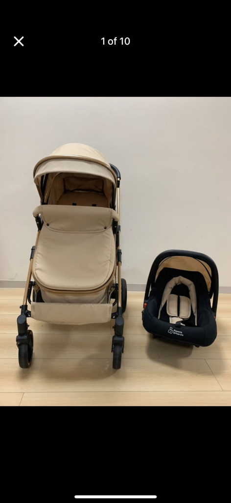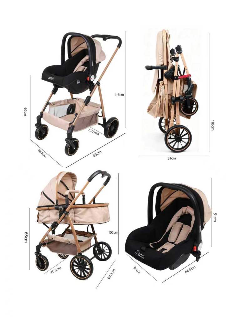 3-in-1 Travel Pram System – Suitable from newborn to 3 years. Includes carrycot, car seat, and pushchair. Lightweight, easy fold, shock-absorbing wheels, and adjustable handle. Ideal for travel, city walks, and everyday use.