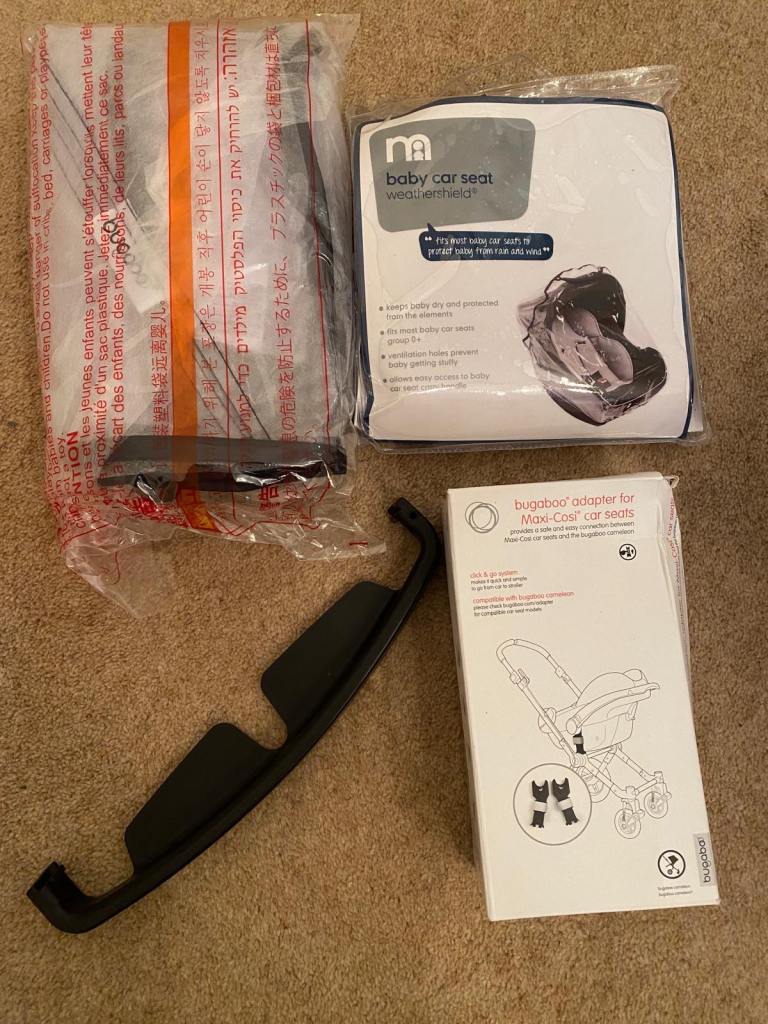-bugaboo adapter for maxi cosi car seat to clip car seat into bugaboo chassis.