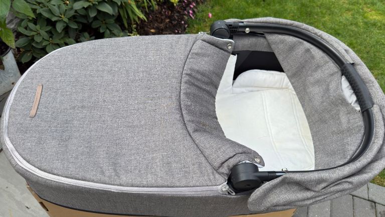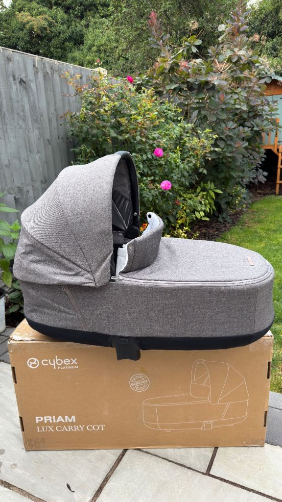 • Cybex Priam Lux Carry Cot – attaches directly to the frame and folds down flat when not in use.
