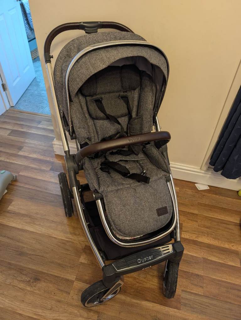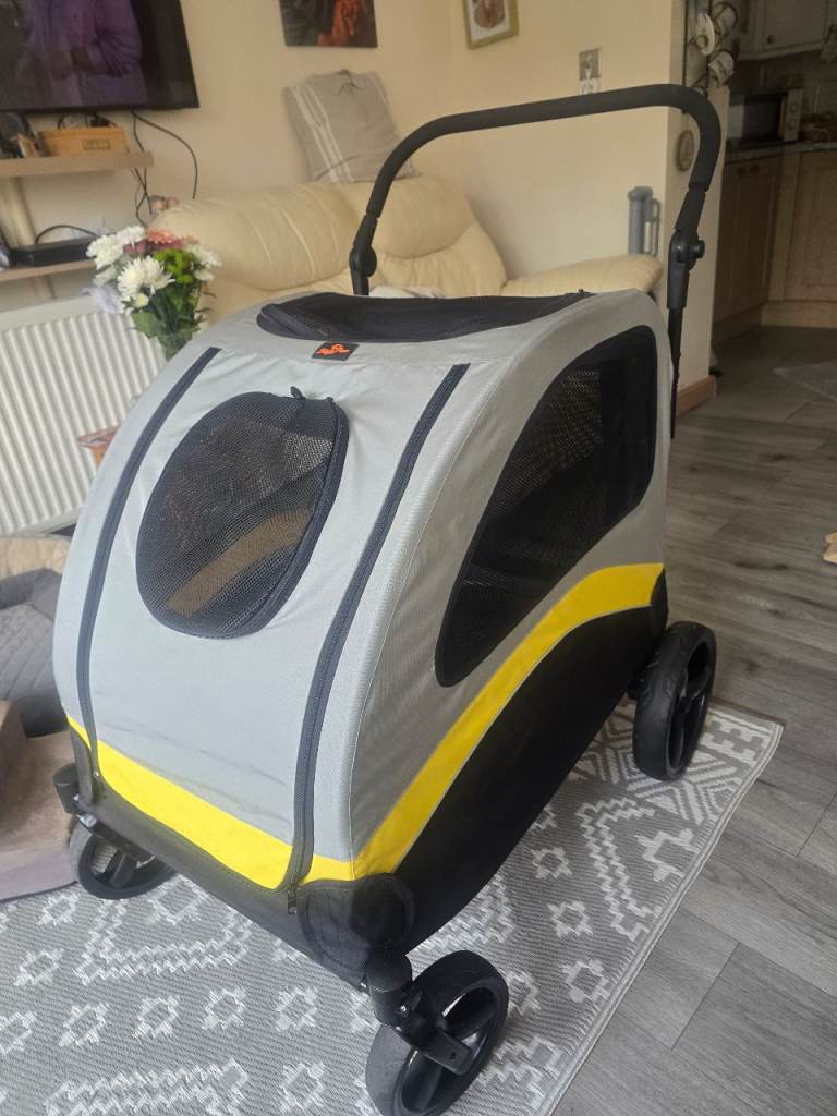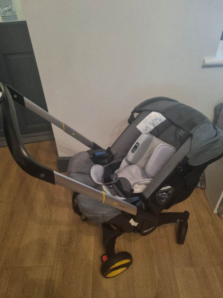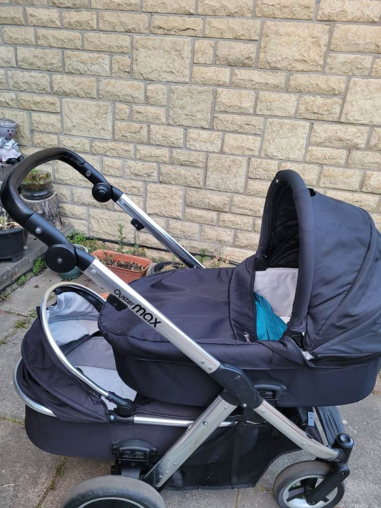 Double pram with bassinets, baby bag and rain covers, easy foldabe