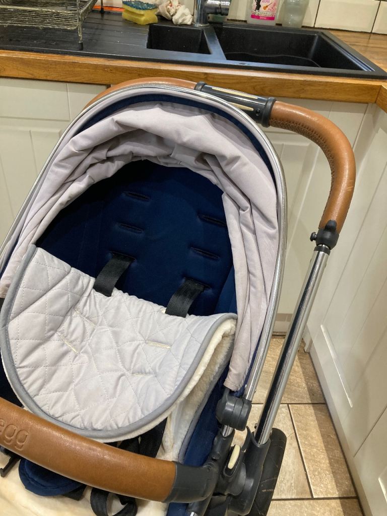 Egg Blue Pram, Pushchair, Carrycot, and Car Seat Set