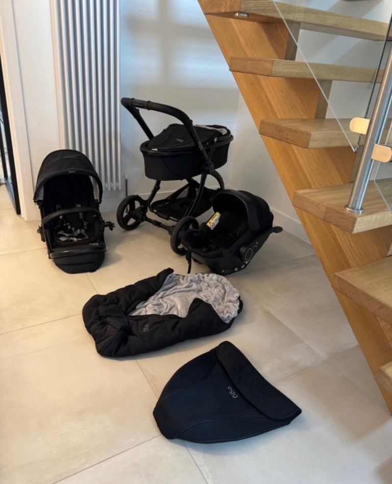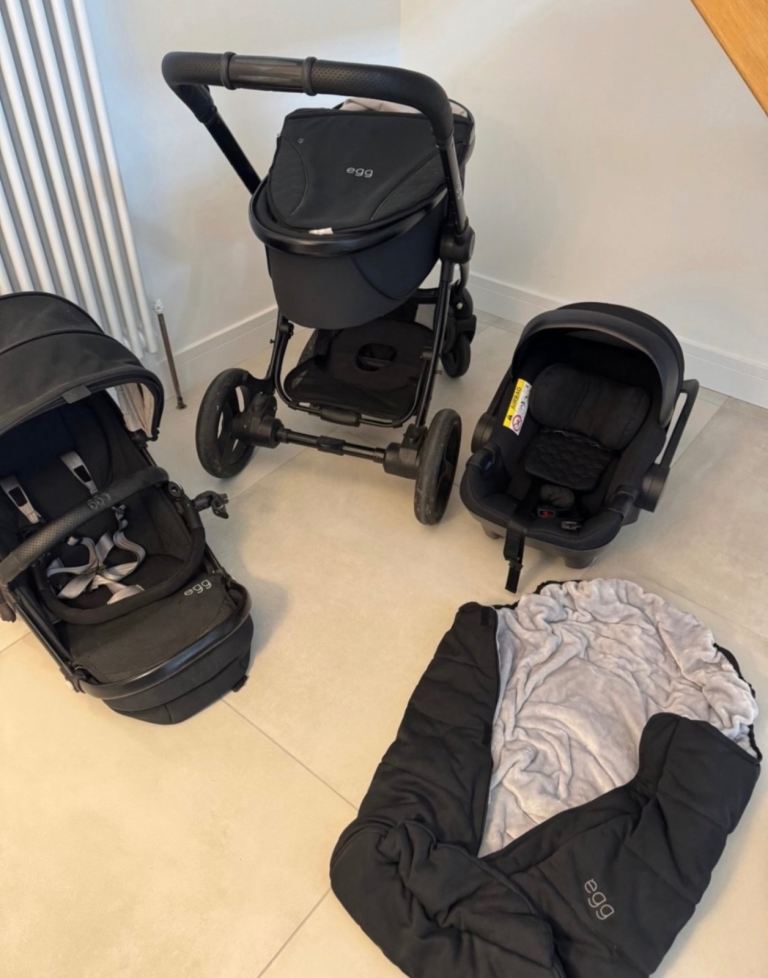 Includes carrycot, car seat, pushchair seat, and footmuff.