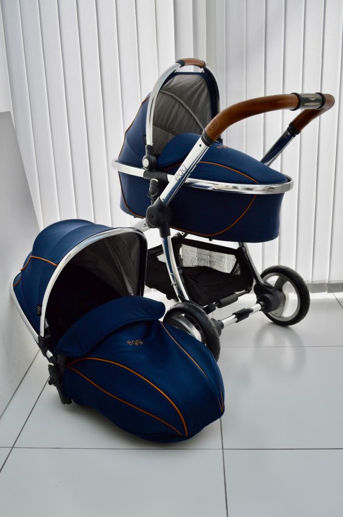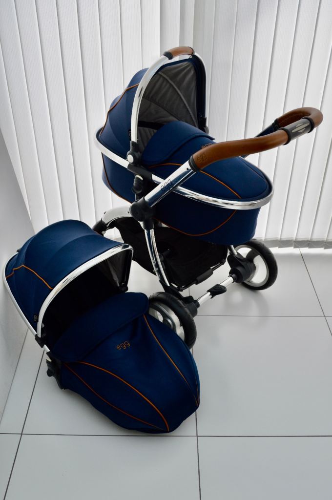 BABYSTYLE EGG REGAL NAVY AND TAN CHROME PRAM, CARRYCOT & JOIE CAR SEAT & ADAPTORS