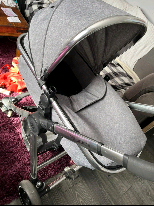 This pram offers a lie-flat seat for napping, parent-facing seat for bonding and forward-facing seat for exploring. Fold the buggy into a compact package with just 1 hand. Attach your car seat with the 1 click adapters for a quick transfer from car to foot. A large shopping basket, rain cover and cup holder provide added comfort.