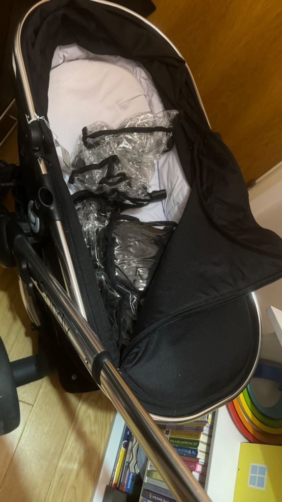 iCandy Black Magic Main Carrycot iCandy Black Magic Seat Liner and Footmuff As part of the purchase the set also included two raincovers, two bumperbars