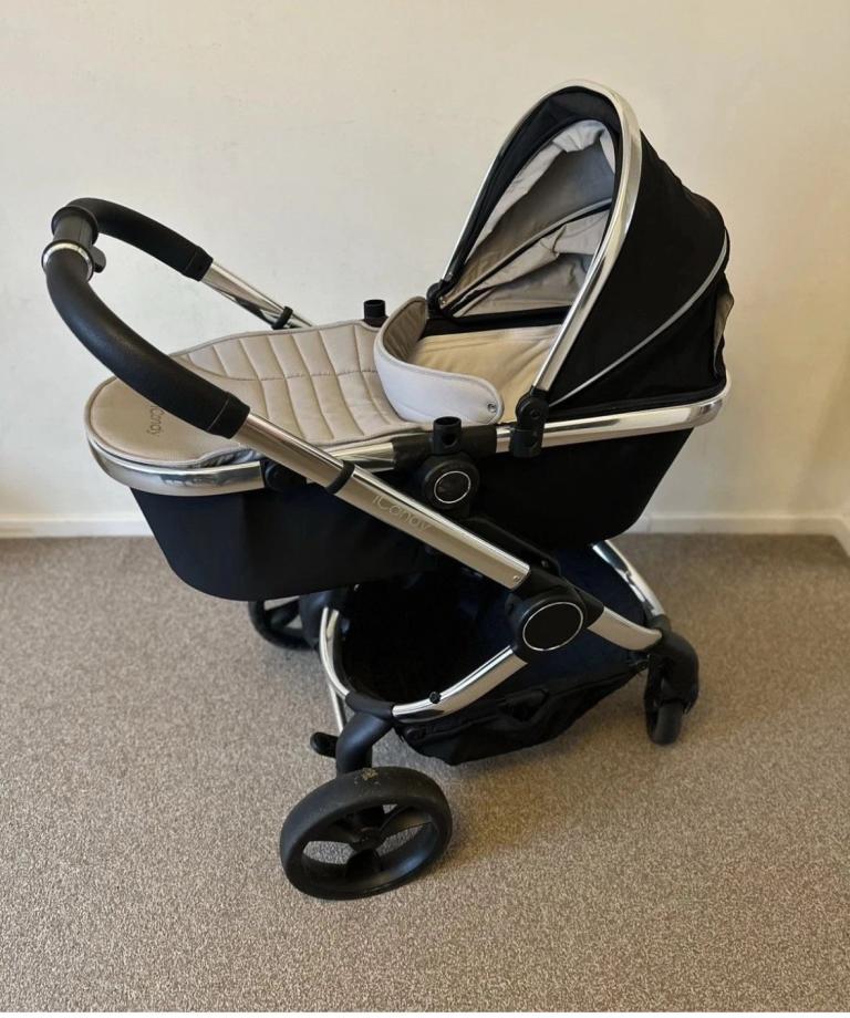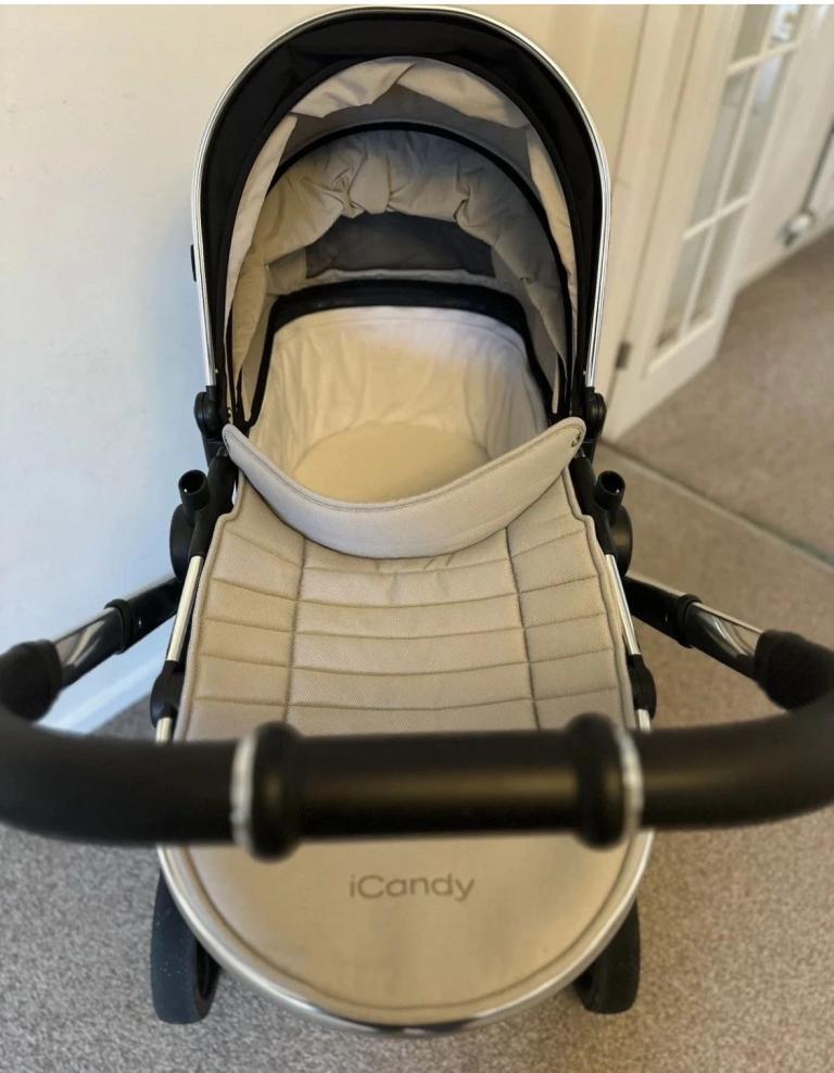 iCandy Peach Cosi System Pram/Buggy Chrome/Beluga Coloured With Various Accessories.