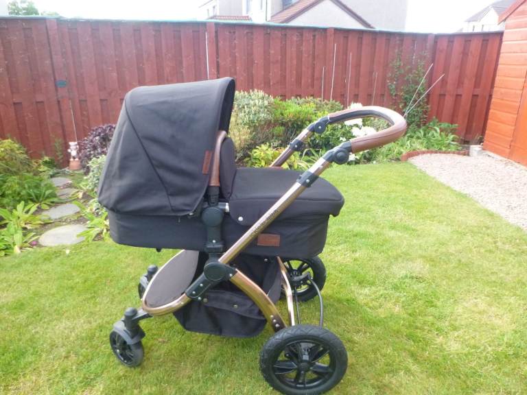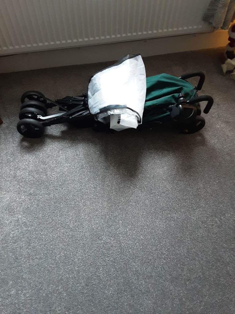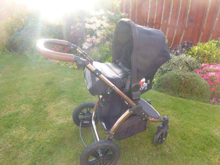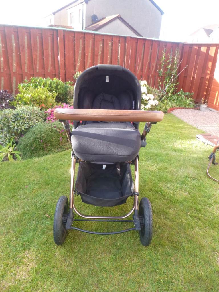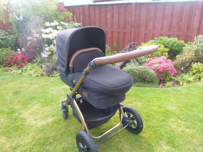 This push chair is in Pristine AS New condition having been purchased before our grandchild was born and used 2 or 3 times max due to pandemic. Black with rose gold coloured frame and tan trim. Cost over £600 new.