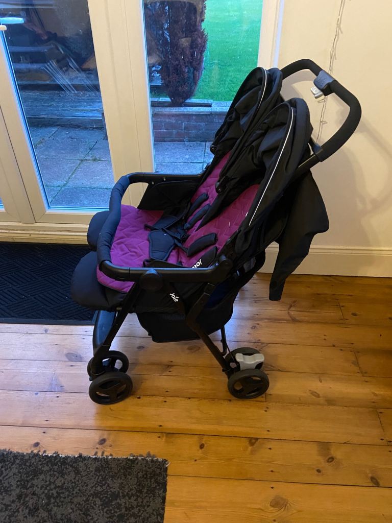 I’m selling my Joie Aire Twin — used just once and has spent its short life in a smoke-free, pet-free home. A beautiful raspberry/purple reversible liner gives it a vibrant pop.