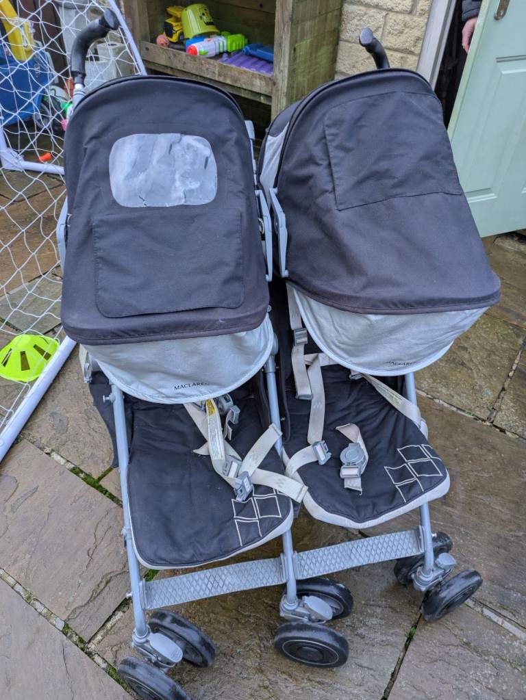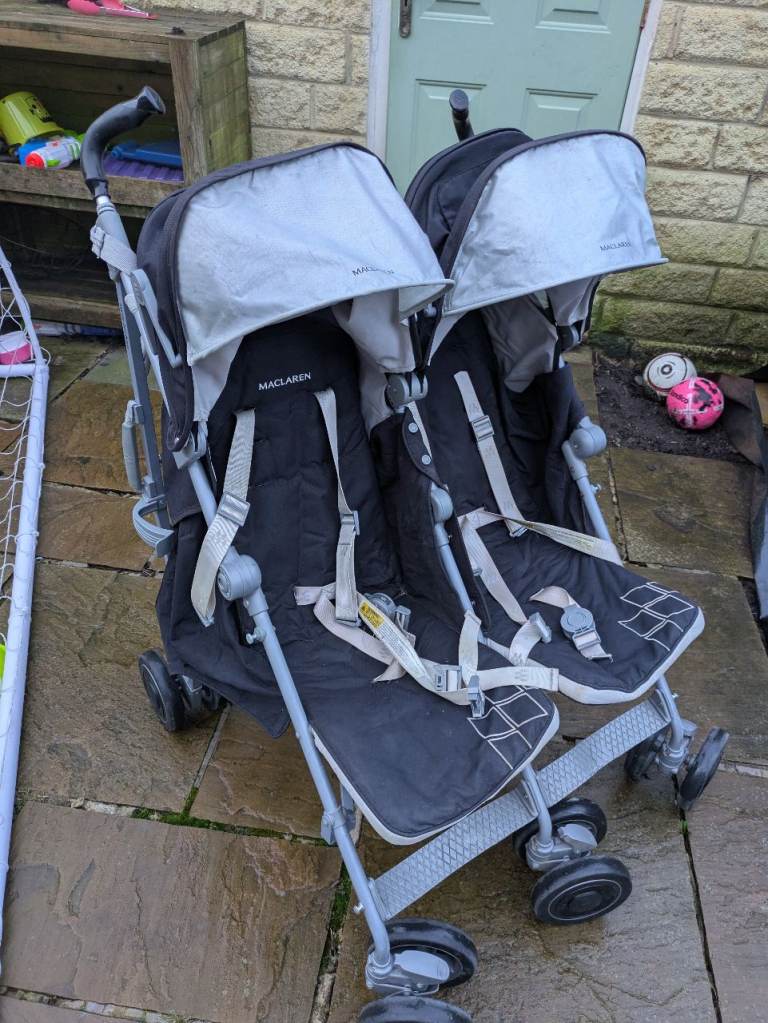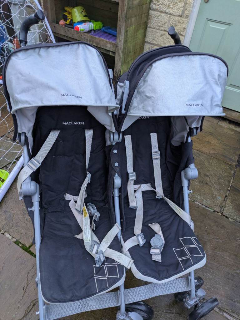 Maclaren double stroller in good used condition. Ideal for twins or siblings close in age. Lightweight umbrella-style design makes it easy to manoeuvre, fold, and store.