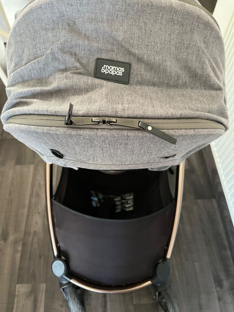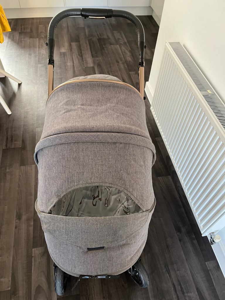 Posting for 7+ yearsMamas and Papas grey rose gold pram and carrycot