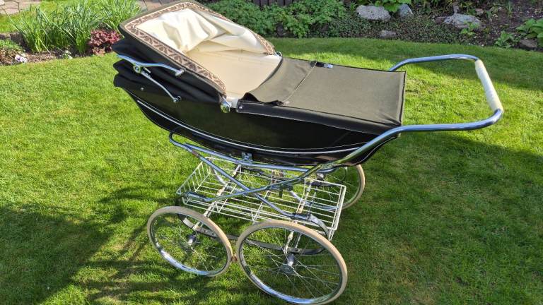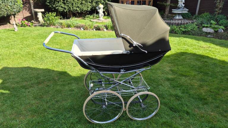 1971 vintage coach built type pram, green, one owner used for one child only over 2 years. Green as per picture. Very good condition. Stored in a dry loft. See pictures for what is included. Chrome chassis. Buyer must collect from Gillingham, Kent. Cash only £150 or near offer