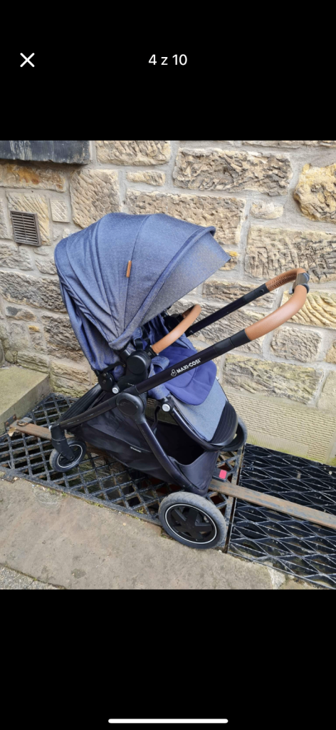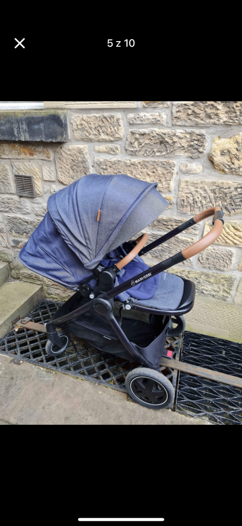 Maxi Cosi pushchair been used for only one year so in excellent condition. Just a few scratches on the sides. Denim blue in colour with brown faux leather handle and bumper bar. Baby/child seat can be forward or parent facing, easy to switch. Can fold all together or have the seat removed to fold the frame separately. Easily fits in small boot. Huge basket so ideal for shopping or beach trips. Comes with a raincover.