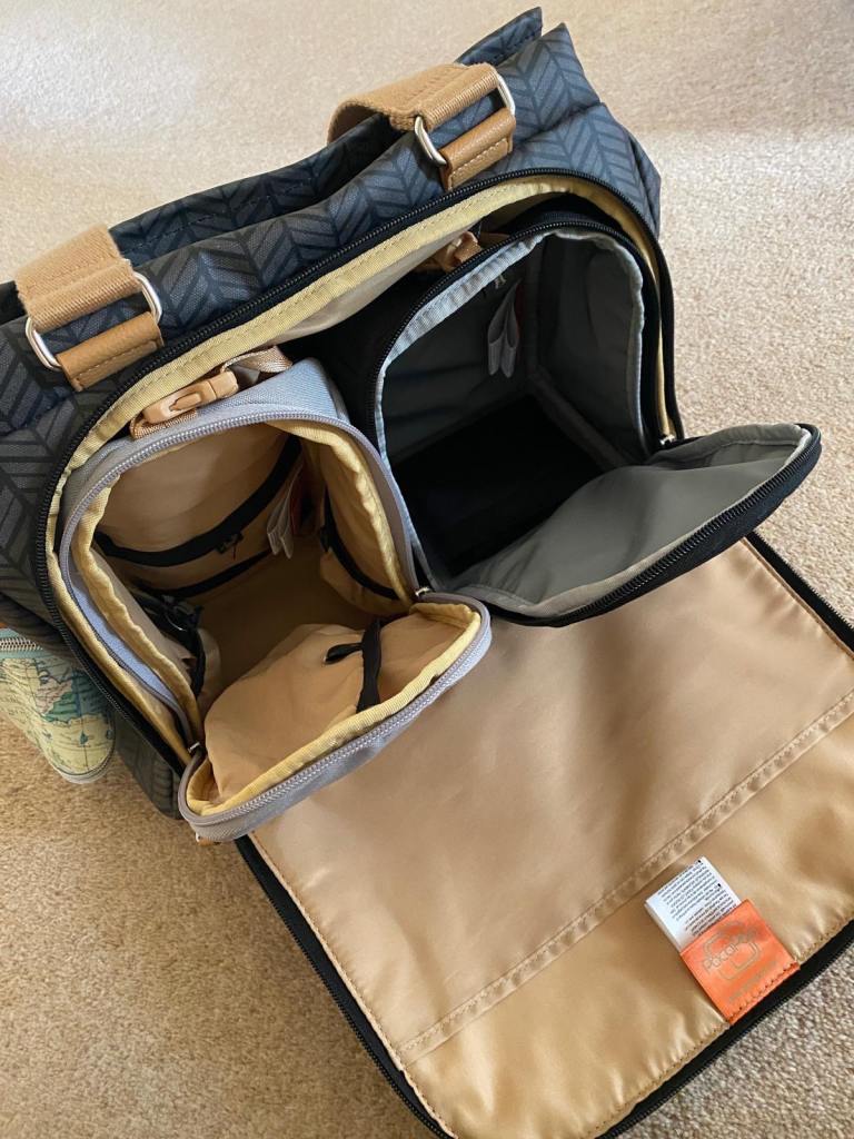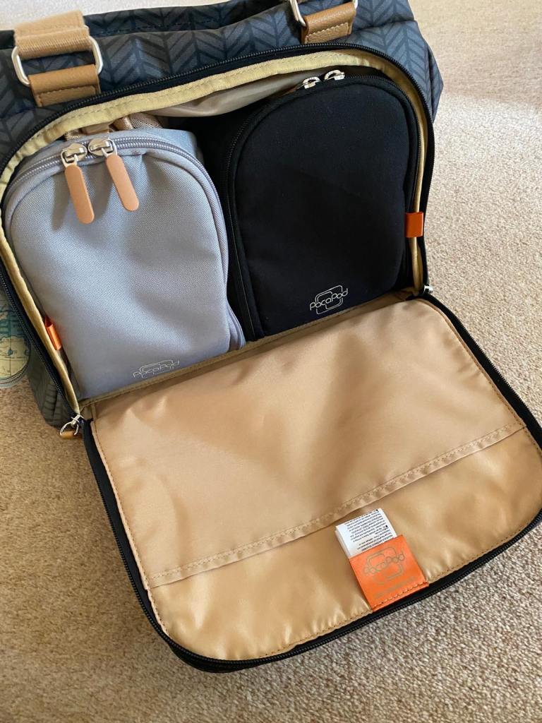 Bag has 2 removable compartments, one for storing all nappy changing related products, the other removable compartment is for storing and keeping baby foods fresh. These compartments can be clipped onto pram also.