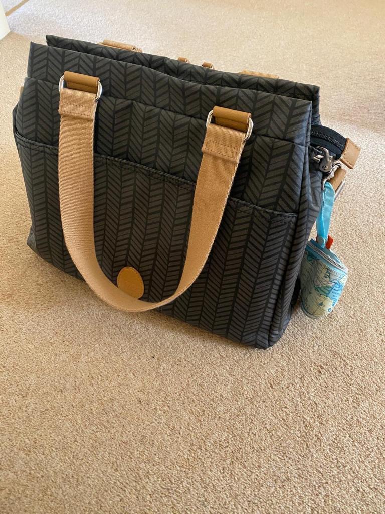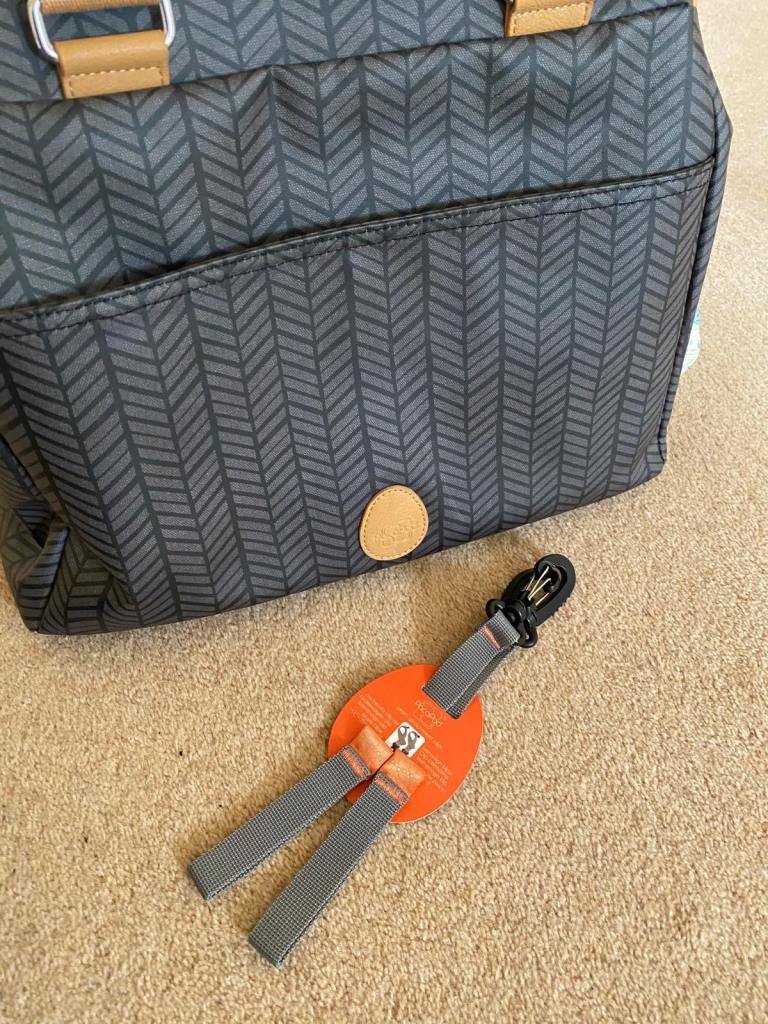 Bag has short and long carrying strap and pram attachment clips (never used)