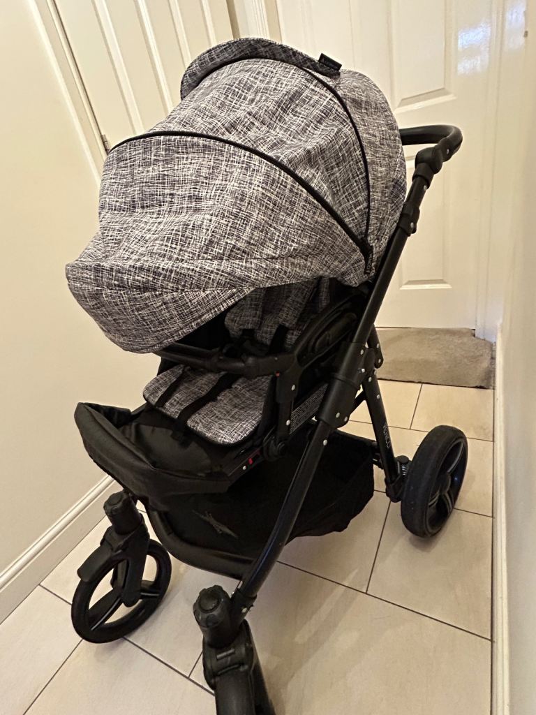 MaxiCosi 3-in-1 travel system: car seat, pram and reclining pushchair.