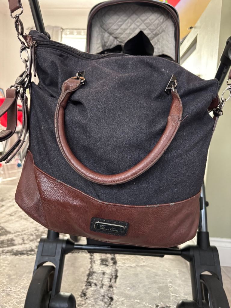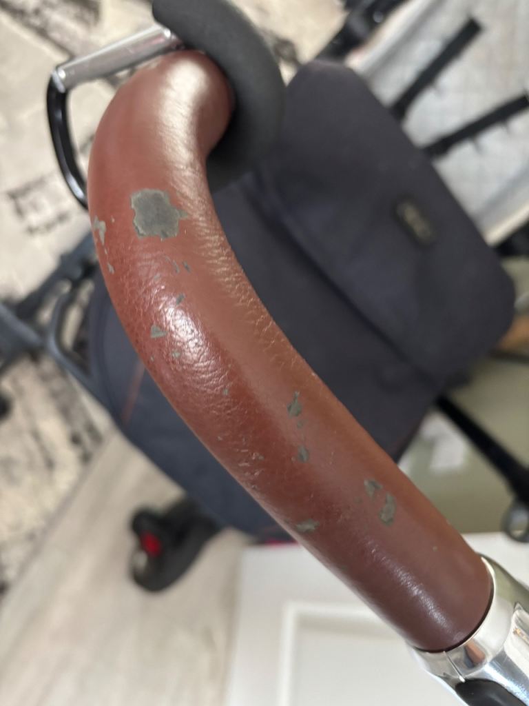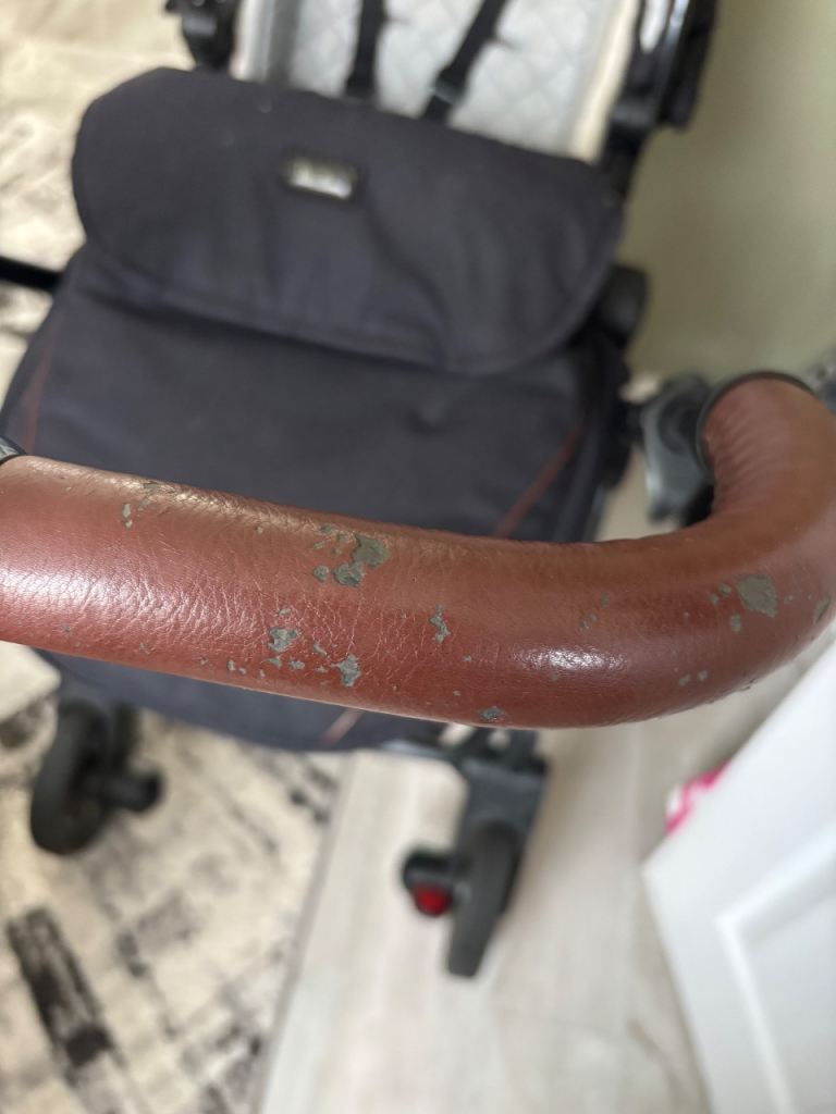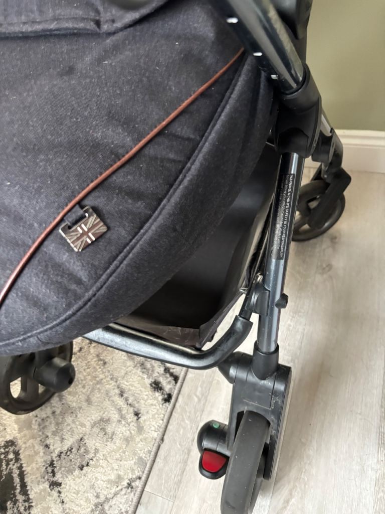 It’s in good condition but of course there is signs of use please see images. Also needing a wash down on the liner. The liner is reversible with thick lovely fur. Comes with silver cross bag, raincover and black Nuby umbrella also has clips for bags to be placed onto bar.
