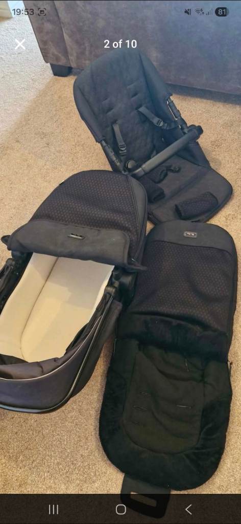 Carry cot is literally new hardly used and same with car seat.