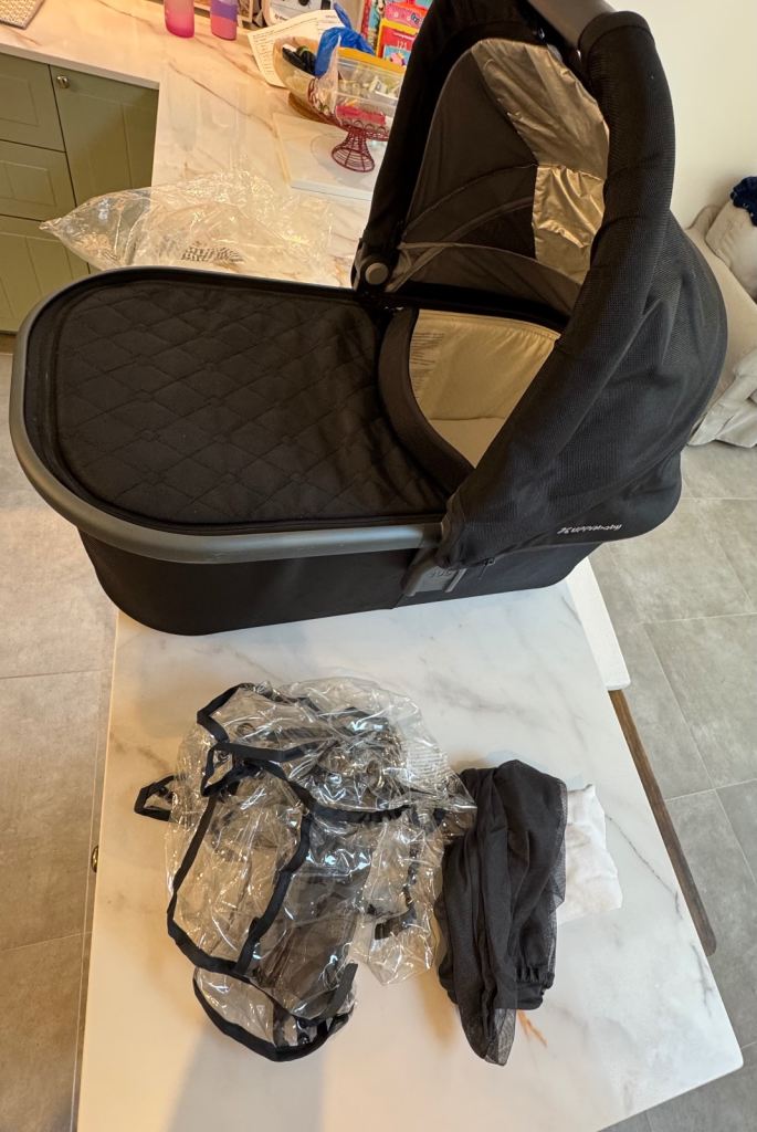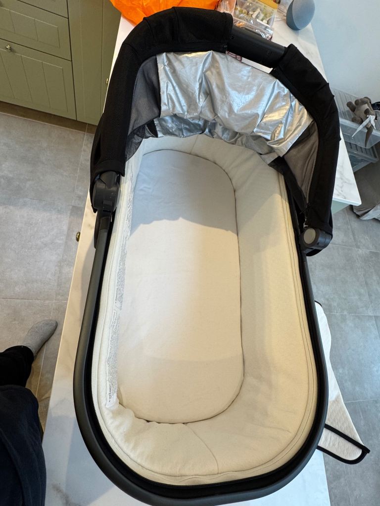 Carrycot mattress always had a waterproof cover on and was covered with blankets. Waterproof cover and 2 mattress fitted sheets included in sale.