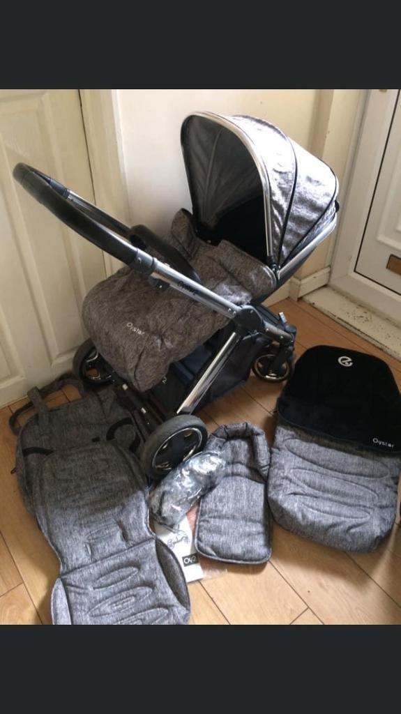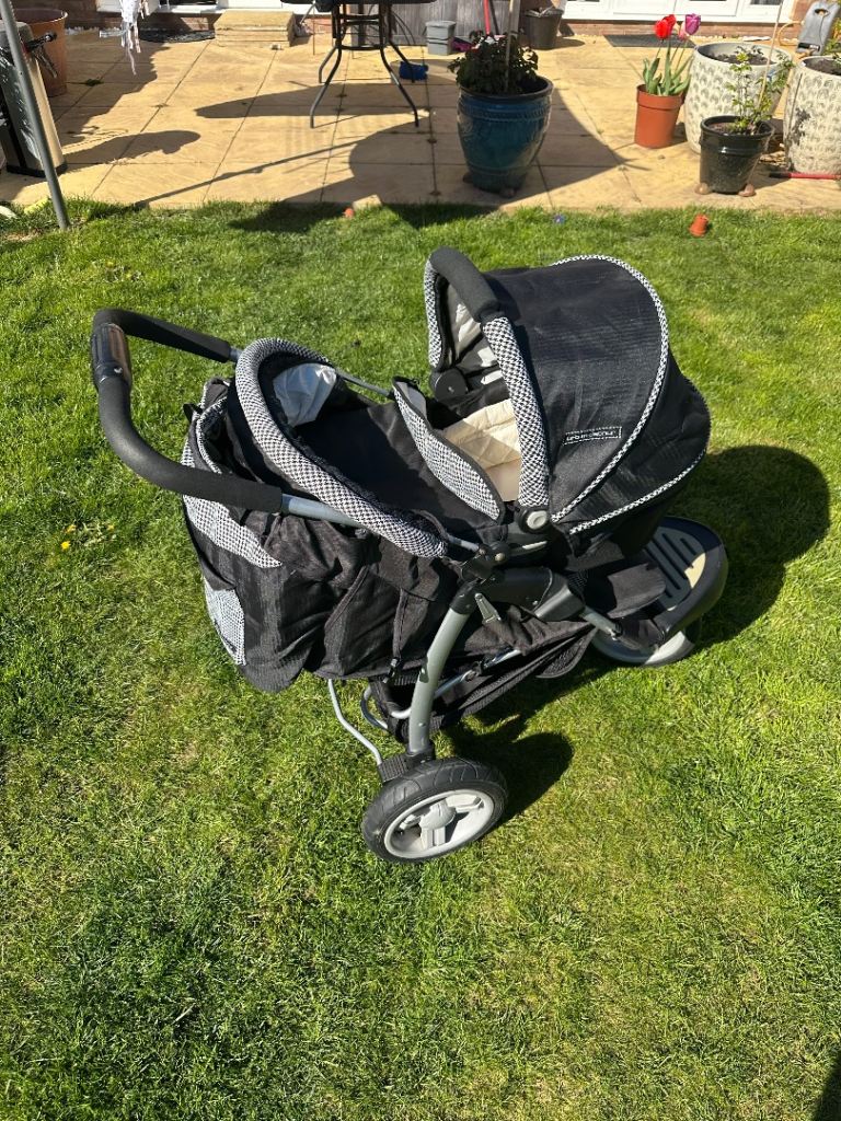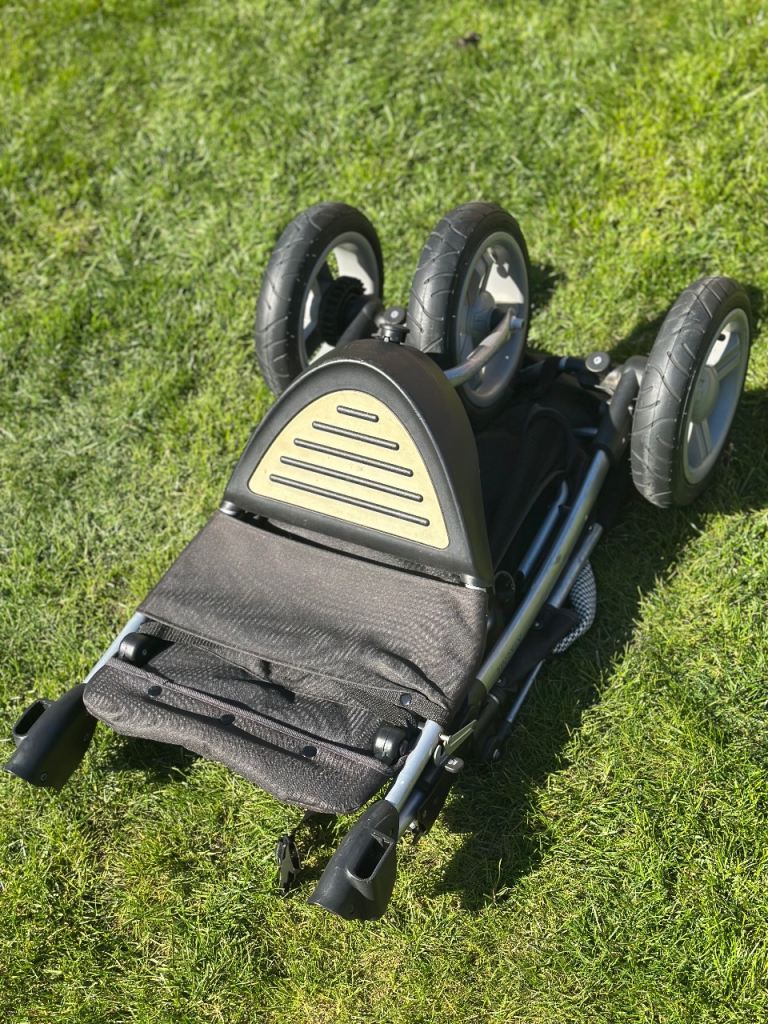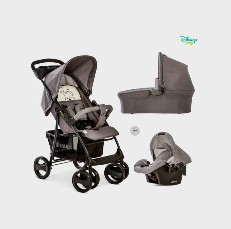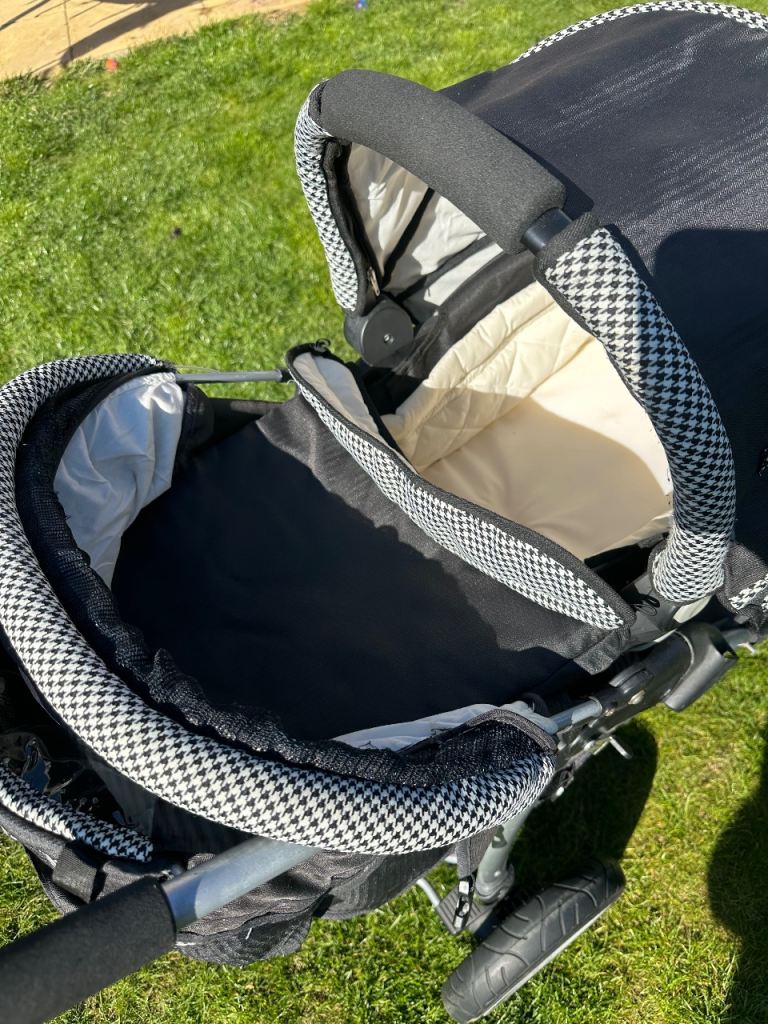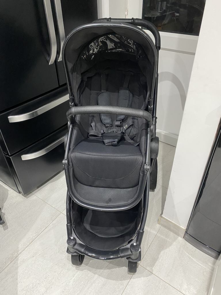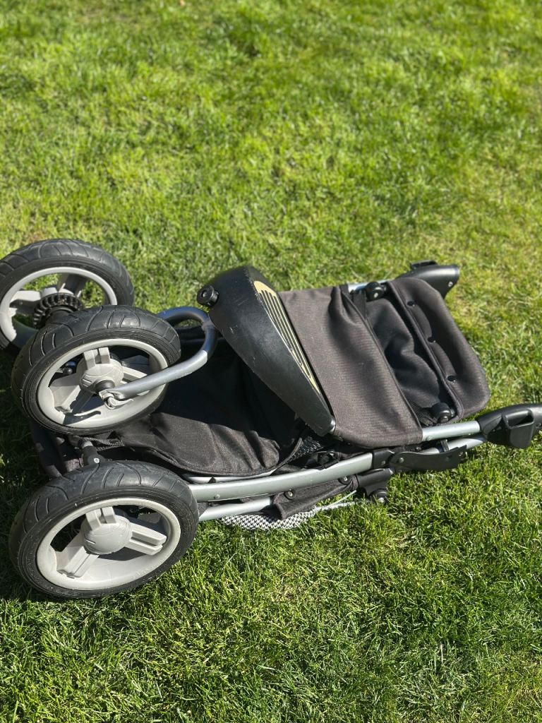 Pushchair with removable basket. Sun cover & storage bag on back.