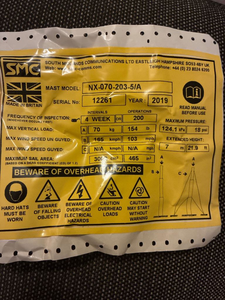 Some cosmetic scratches. Also the mast will need servicing but functions perfectly well. We also have an aluminium top plate to affix equipment.