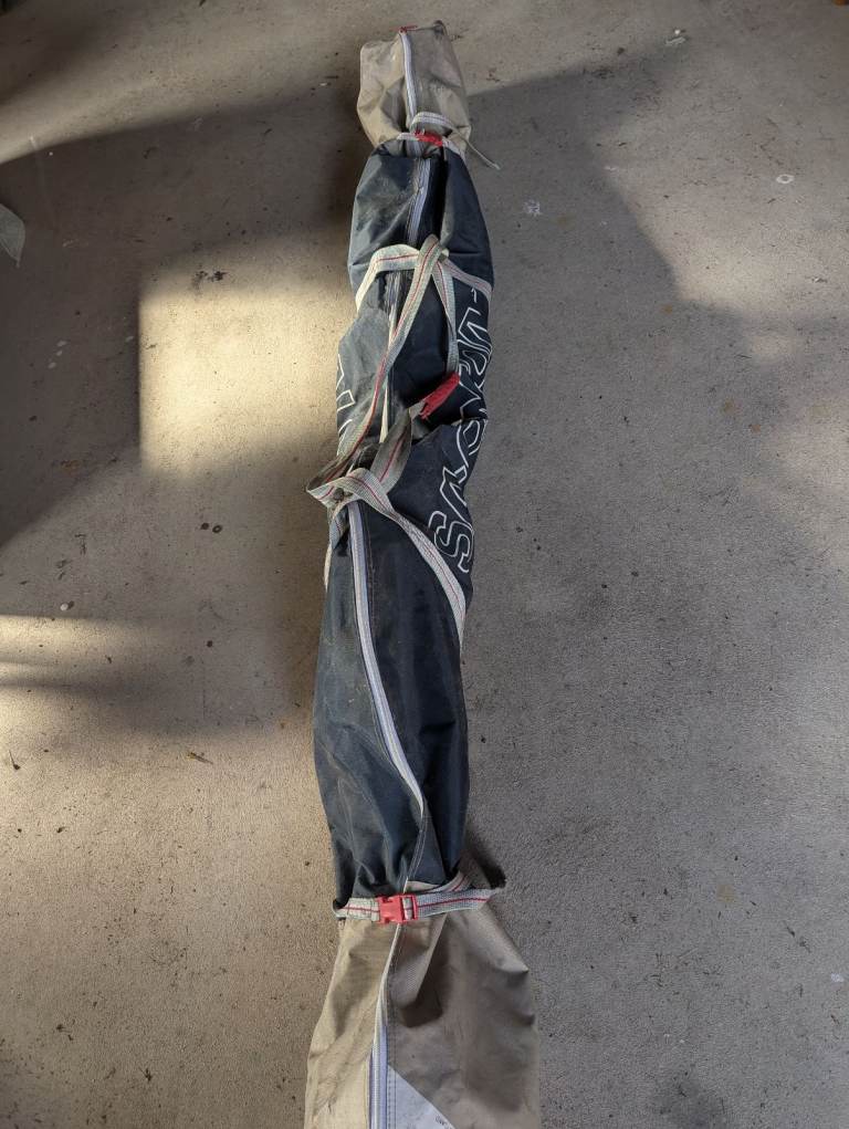 Skis and ski poles in carry bag