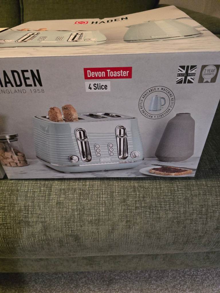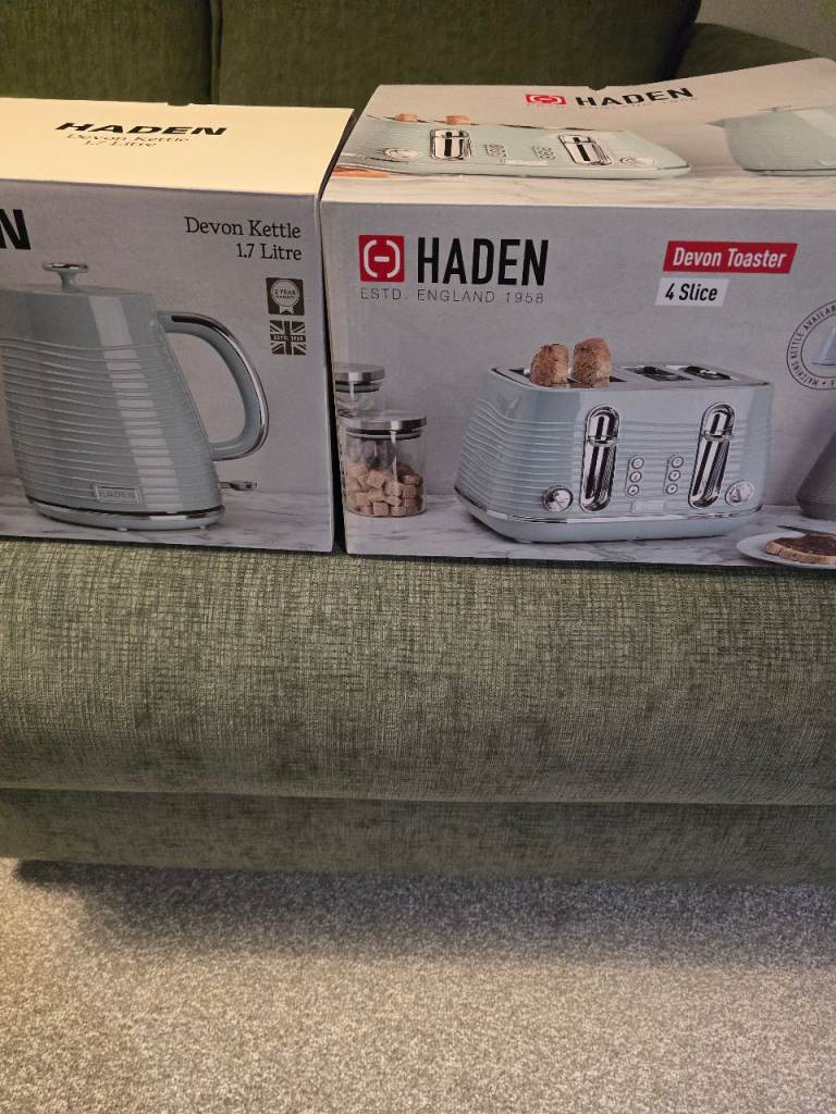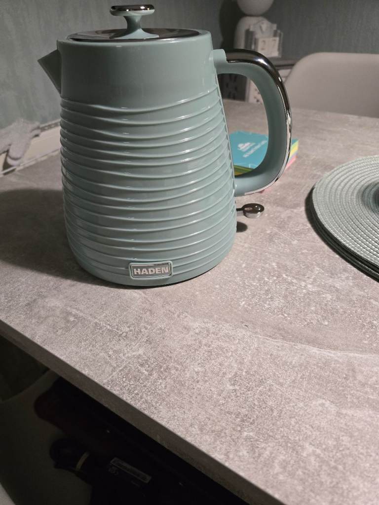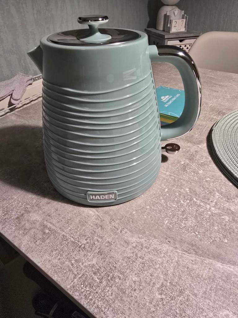 Haden fast boil kettle 1.75l and matching 4 slot toaster in eucalyptus green(like mint/sage gree). Brand new in box. Not right shade green I was looking for but left to late to take back