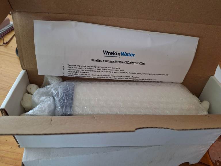 Large hammered copper water filtered dispenser with decorative stones. Including filters. Brand new in box, all relevant parts tap in box. Buyer to collect.