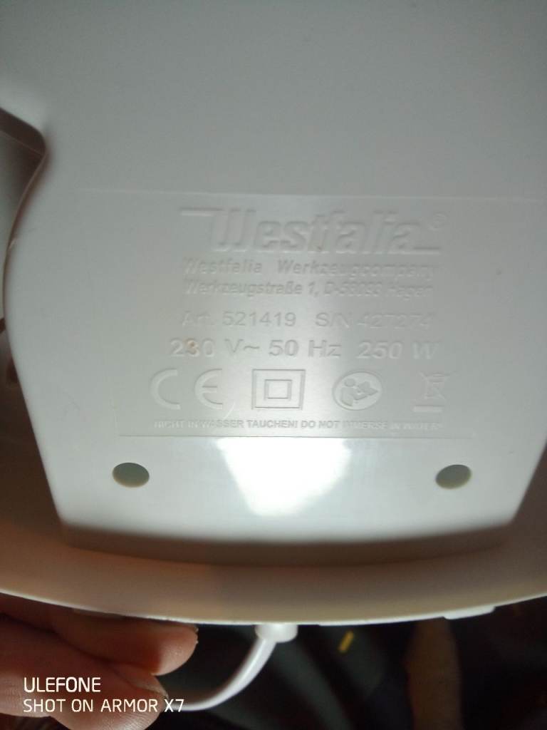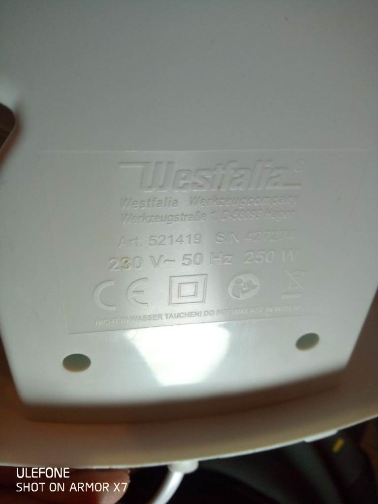 Westfalia Laser 2000 food hydrator. 5 shelf. 250 watt. 240 volt. Used about half a dozen times. Good appliance for preparing food for camping/ hiking meals.Easy to operate and tailor to your tastes. Reluctant sale but space needed. Made in Germany.