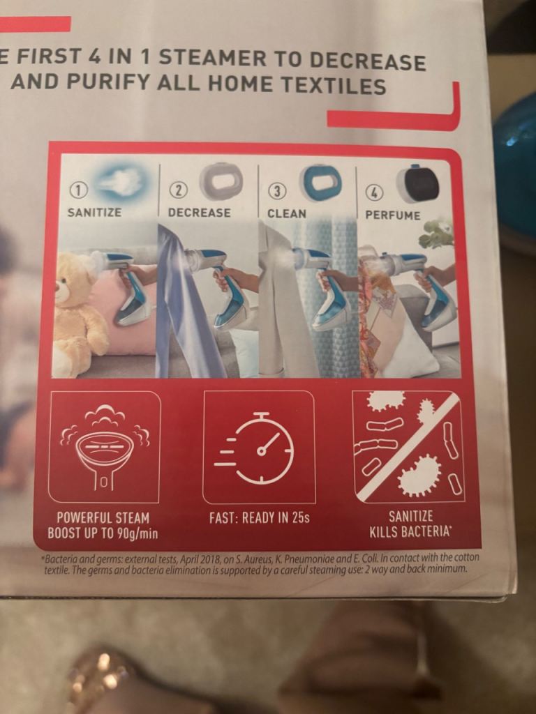 4 in 1 steamer to decrease and sanitise all home textiles also cleans and perfumes kills bacteria has multi pad system