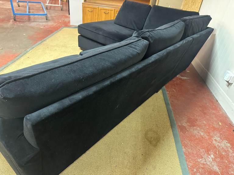 #201 Next Black Suede Corner Sofa - Excellent Condition – Delivery Available