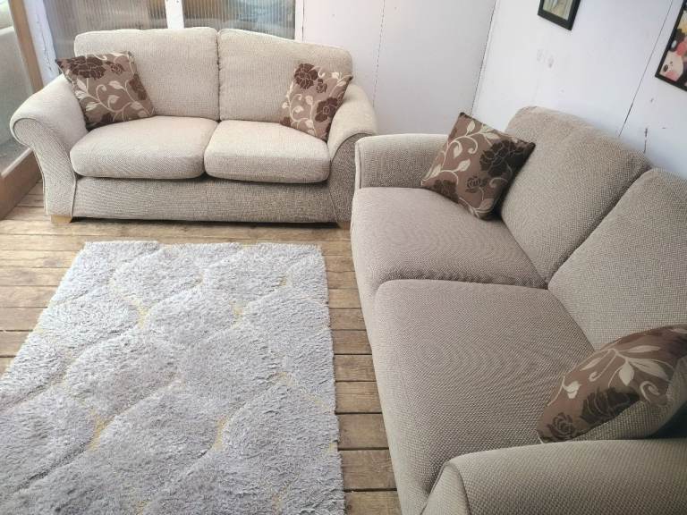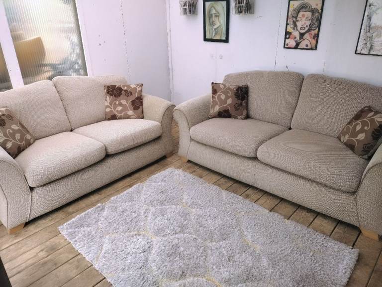 "Furniture village" 2 and 3 seater sofa set in oatmeal-excellent condition