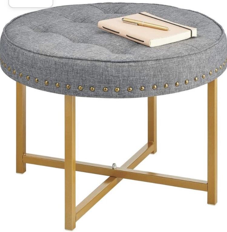 COMFORT & STORAGE: This round upholstered footstool is a comfortable footrest or a storage surface for books, remotes and more. It is perfect for the living room, bedroom or hallway.