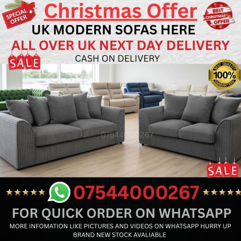 great sofa at a great price. Clean, comfortable, and ready for immediate collection. No rips or sagging. Ideal for students, first homes, or anyone needing a reliable sofa quickly. Same‑day pickup available.