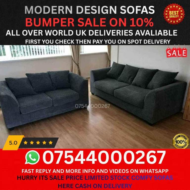 great sofa at a great price. Clean, comfortable, and ready for immediate collection. No rips or sagging. Ideal for students, first homes, or anyone needing a reliable sofa quickly. Same‑day pickup available.