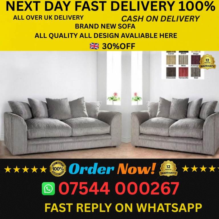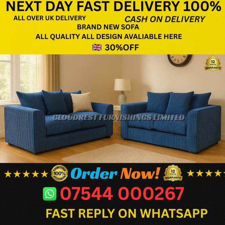 great sofa at a great price. Clean, comfortable, and ready for immediate collection. No rips or sagging. Ideal for students, first homes, or anyone needing a reliable sofa quickly. Same‑day pickup available.