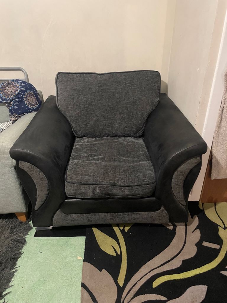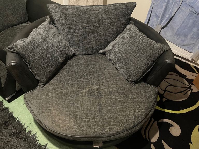 Normal armchair and 1 round swivel cuddle chair. Both in very good condition no rips or marks collection Cupar.