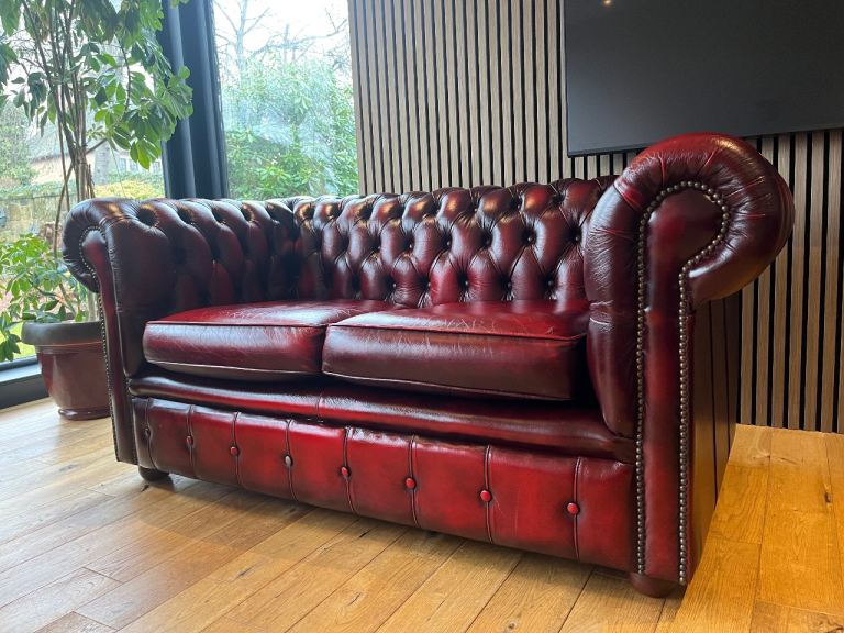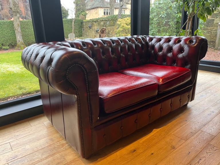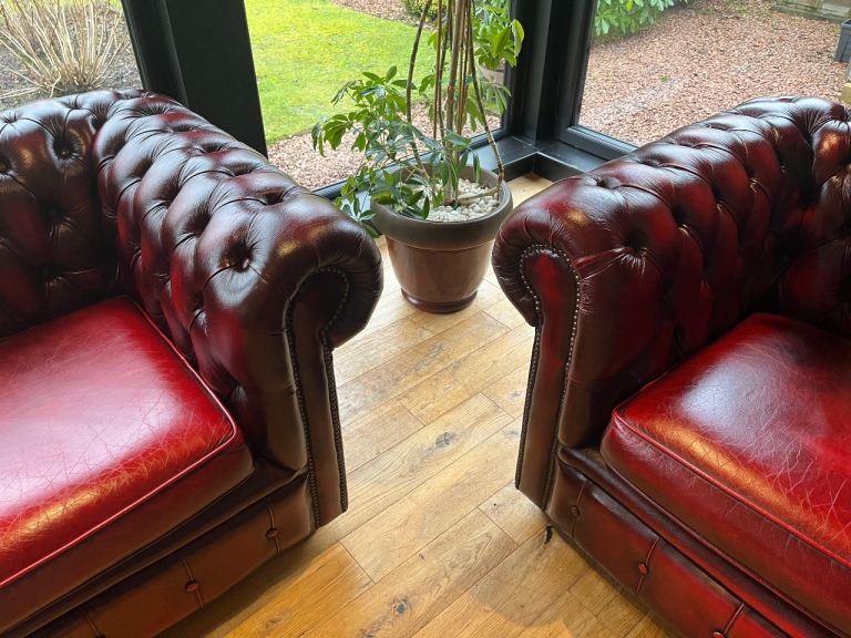 2 stunning leather Chesterfield roll top sofa set for sale. These sofas are extremely comfortable in amazing condition. Would look fantastic in any interior. Collection only £900 for both.