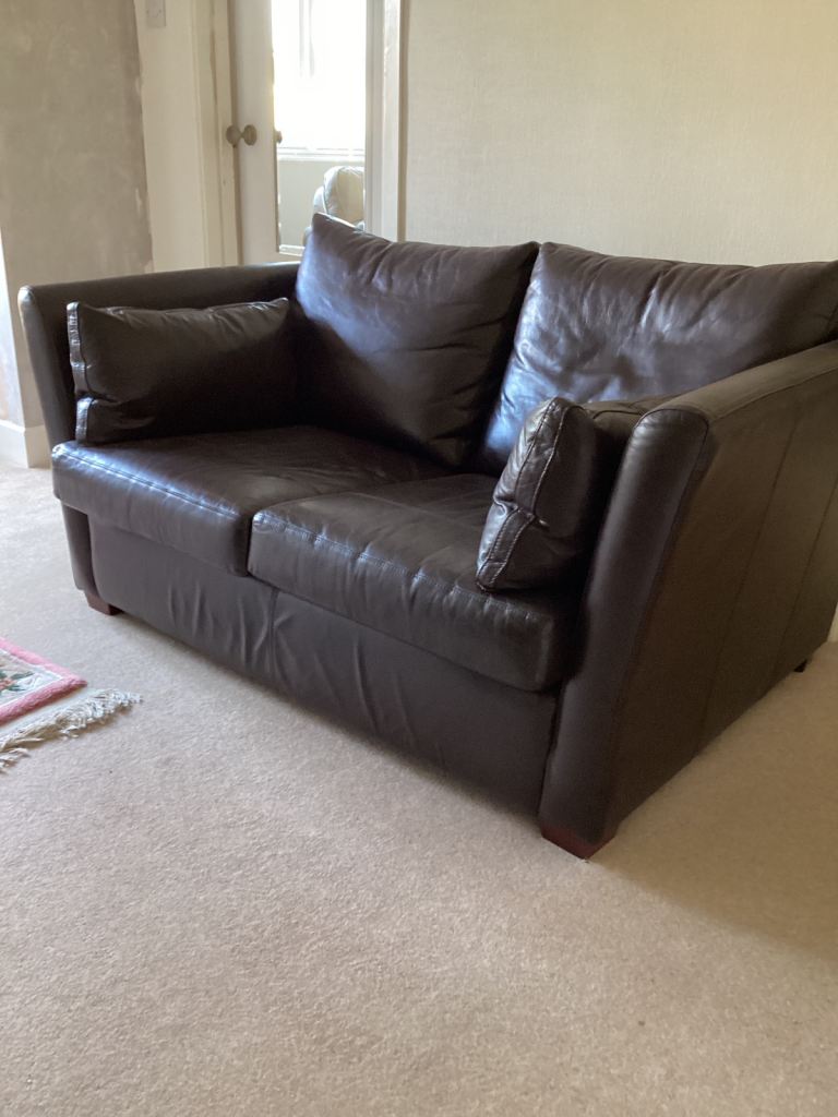 Multiyork Diplomat - Leather two seater sofa in good condition. The back and arm cushions have duck feather filling and the seat cushions are foamed filled. All cushions have a zip to remove the cover, should it be required.