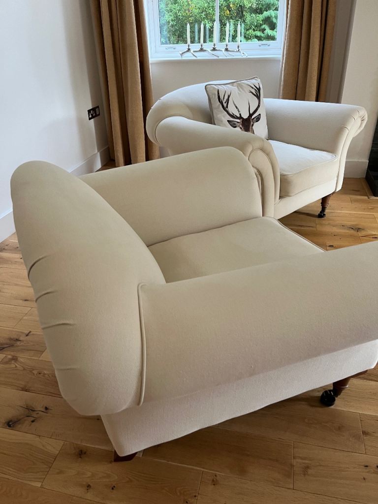 2 seater sofa and two armchairs in pale stone. SofaSofa