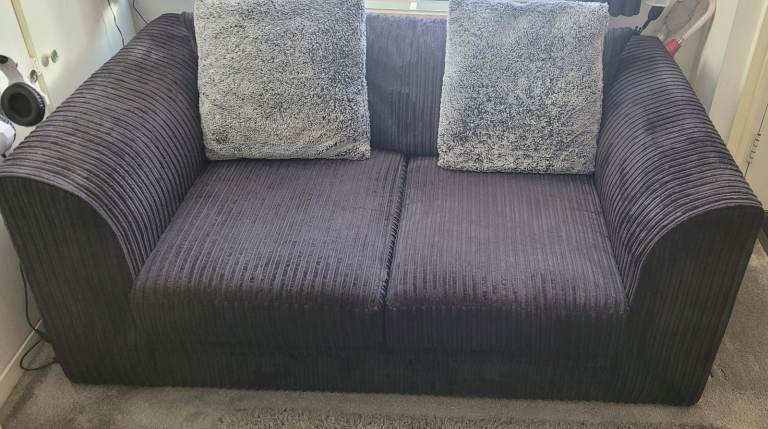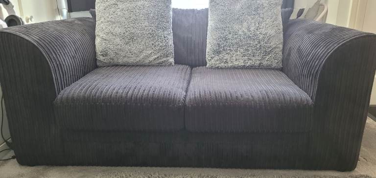 Black 2 seater fabric sofa in excellent condition. Length is 150cm width is 90cm.