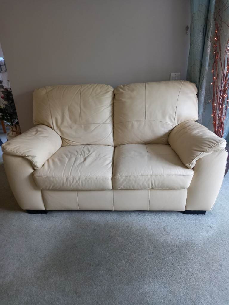 Cream leather sofa in good condition